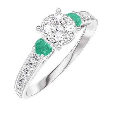 « L'ATELIER » NR 210287Pierścionek Białe złoto 750 - Klaster naturalnych diamentów okrągły odpowiednik 0.7 - Kamienie boczne Szmaragd - Oprawa Diament 5