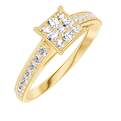 Pierścionek Żółte złoto 375 - Klaster naturalnych diamentów „Księżniczka” odpowiednik 0.7 - Oprawa Diament