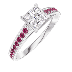 Pierścionek Białe złoto 750 - Klaster naturalnych diamentów „Księżniczka” odpowiednik 0.7 - Oprawa Rubin