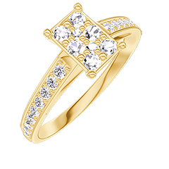 « L'ATELIER » NR 210406Pierścionek Żółte złoto 375 - Klaster naturalnych diamentów Prostokąt odpowiednik 0.7 - Oprawa Diament