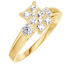 « L'ATELIER » NR 210421Pierścionek Żółte złoto 750 - Klaster naturalnych diamentów Prostokąt odpowiednik 0.7 - Kamienie boczne Diament