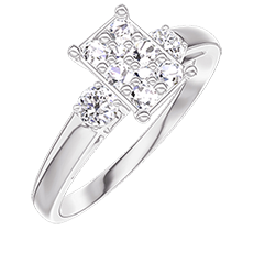 « L'ATELIER » NR 210423Pierścionek Białe złoto 750 - Klaster naturalnych diamentów Prostokąt odpowiednik 0.7 - Kamienie boczne Diament
