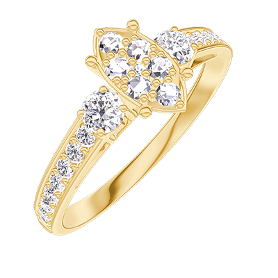 « L'ATELIER » Nº210726Pierścionek Żółte złoto 375 - Klaster naturalnych diamentów Markiza odpowiednik 0.7 - Kamienie boczne Diament - Oprawa Diament