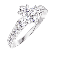 « L'ATELIER » NR 210727Pierścionek Białe złoto 750 - Klaster naturalnych diamentów Markiza odpowiednik 0.7 - Kamienie boczne Diament - Oprawa Diament