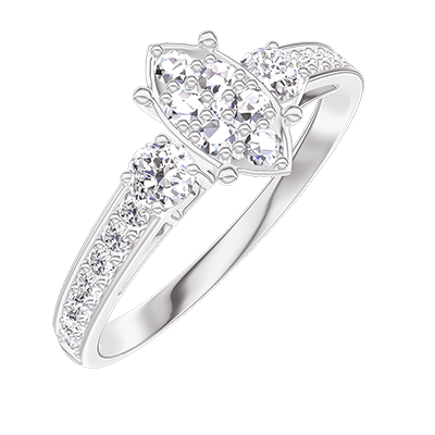 « L'ATELIER » NR 210728Pierścionek Białe złoto 375 - Klaster naturalnych diamentów Markiza odpowiednik 0.7 - Kamienie boczne Diament - Oprawa Diament