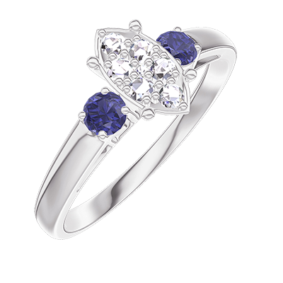« L'ATELIER » Nº210763Pierścionek Białe złoto 750 - Klaster naturalnych diamentów Markiza odpowiednik 0.7 - Kamienie boczne Niebieski szafir