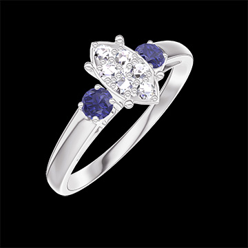 « L'ATELIER » Nº210763Pierścionek Białe złoto 750 - Klaster naturalnych diamentów Markiza odpowiednik 0.7 - Kamienie boczne Niebieski szafir