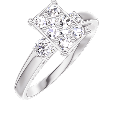 « L'ATELIER » Nº211024Pierścionek Białe złoto 375 - Klaster naturalnych diamentów Prostokąt odpowiednik 1 - Kamienie boczne Diament 4.6