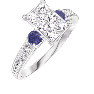 « L'ATELIER » NR 211067Pierścionek Białe złoto 750 - Klaster naturalnych diamentów Prostokąt odpowiednik 1 - Kamienie boczne Niebieski szafir - Oprawa Diament 4.6