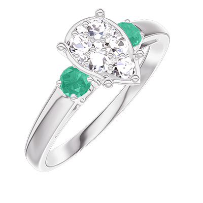 « L'ATELIER » Nº211283Pierścionek Białe złoto 750 - Klaster naturalnych diamentów Gruszka odpowiednik 1 - Kamienie boczne Szmaragd