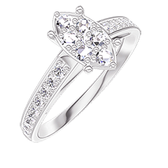 Pierścionek Białe złoto 375 - Klaster naturalnych diamentów Markiza odpowiednik 1 - Oprawa Diament