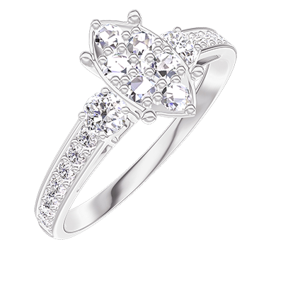 « L'ATELIER » NR 211327Pierścionek Białe złoto 750 - Klaster naturalnych diamentów Markiza odpowiednik 1 - Kamienie boczne Diament - Oprawa Diament