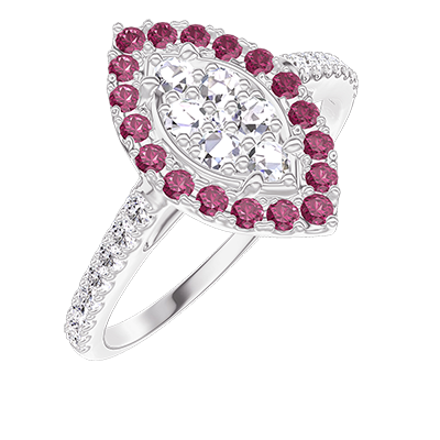 « L'ATELIER » NR 211663Pierścionek Białe złoto 750 - Klaster naturalnych diamentów Markiza odpowiednik 0.5 - Korona z kamieni Rubin - Oprawa Diament