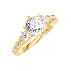 Pierścionek Białe złoto 375 - Diament okrągły 0.5 karat - Kamienie boczne Diament