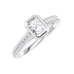 Pierścionek Białe złoto 750 - Diament laboratoryjny Prostokąt 0.3 karat - Oprawa Diament laboratoryjny
