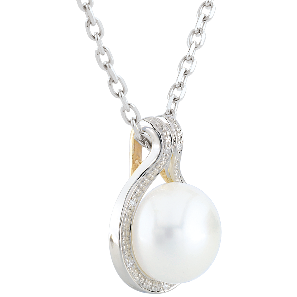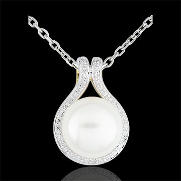 Zawieszka Adélie - perły i diamenty - złoto białe 9-karatowe