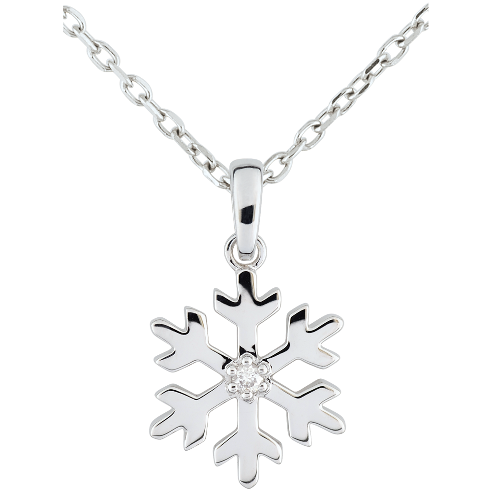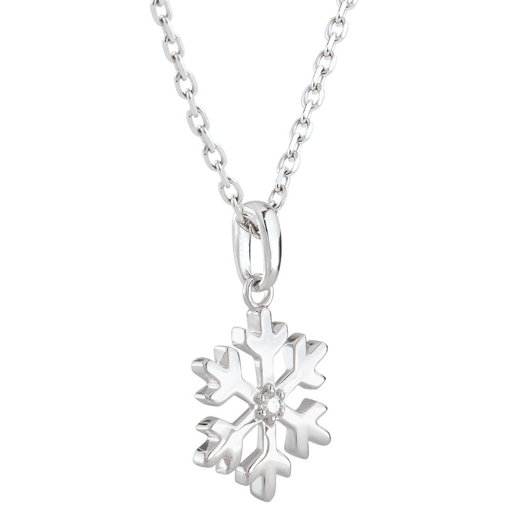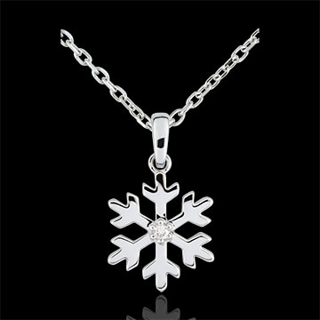 Zawieszka z diamentem Oszroniony Płatek - złoto białe 9-karatowe