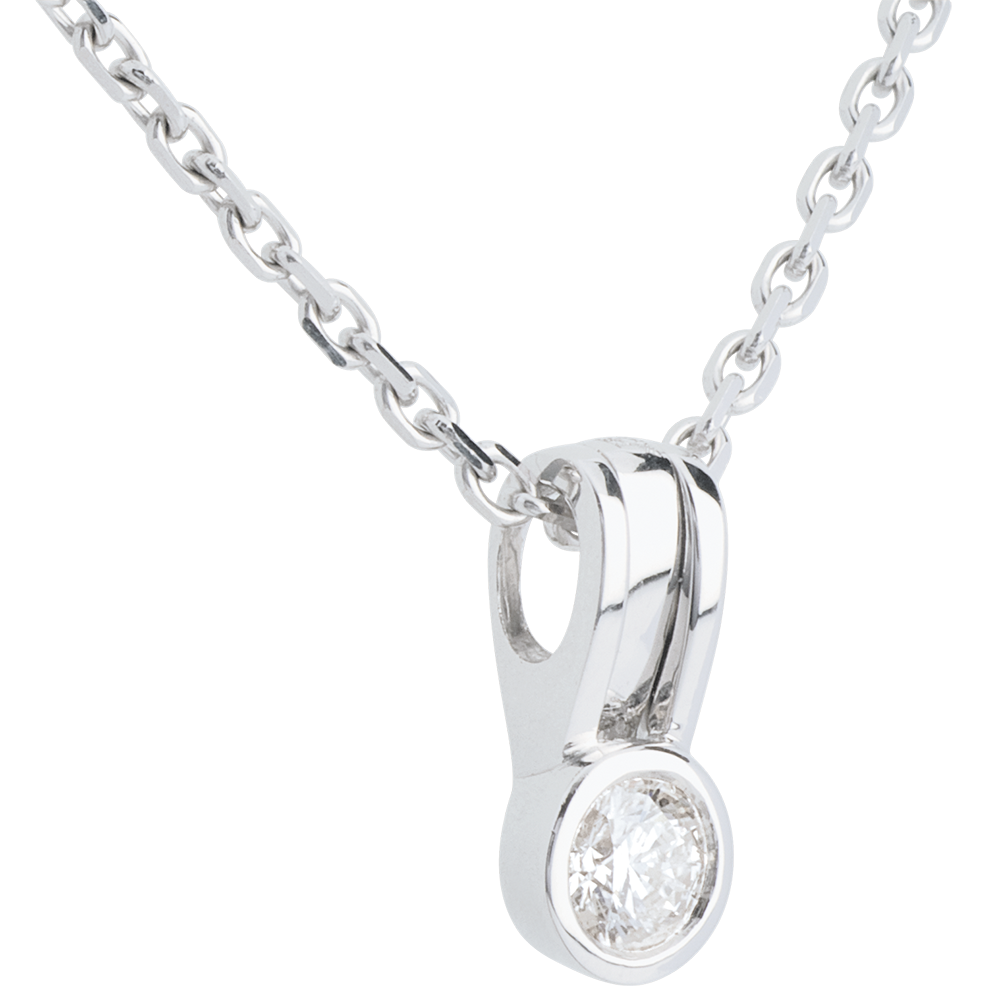 Zawieszka z diamentem o prostej formie i mocnym zaczepie oferująca dyskretny blask we wgłębieniu szyi.