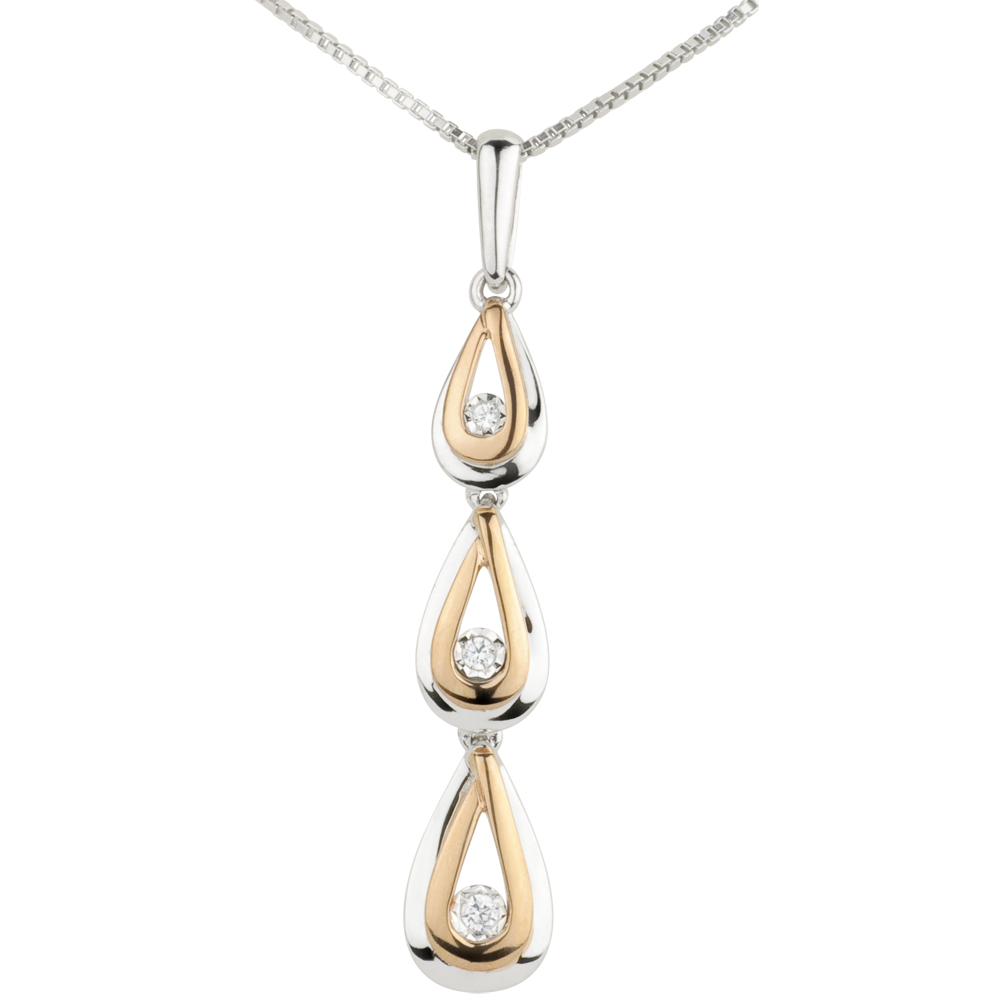 Trzy magiczne krople z różowego i białego złota ozdobione diamentem w delikatnej zawieszce.