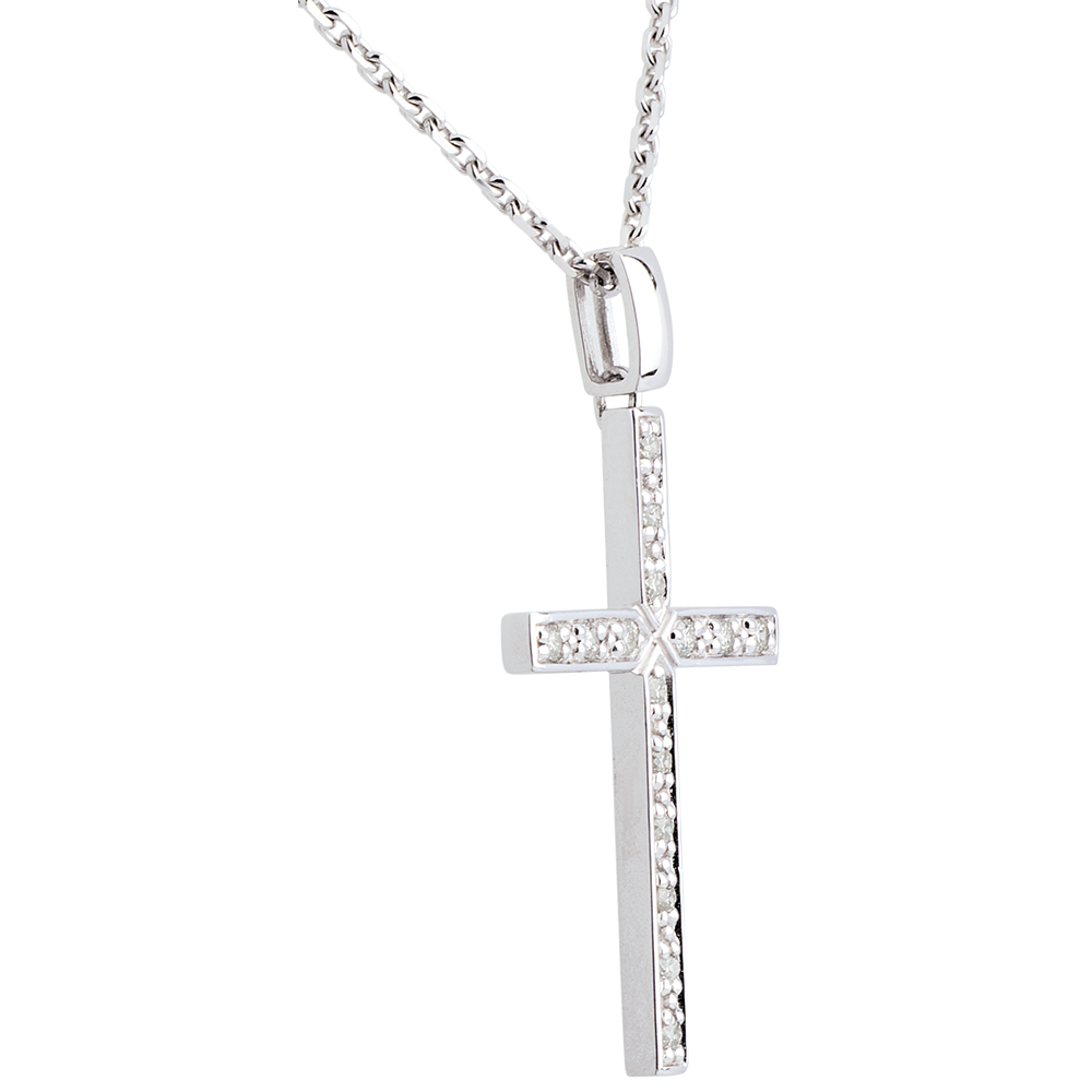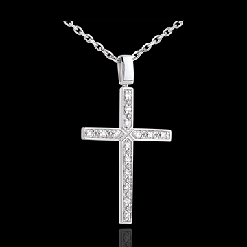 Zawieszka Krzyż z białego złota 18-karatowego wysadzana diamentem - 0,15 karata