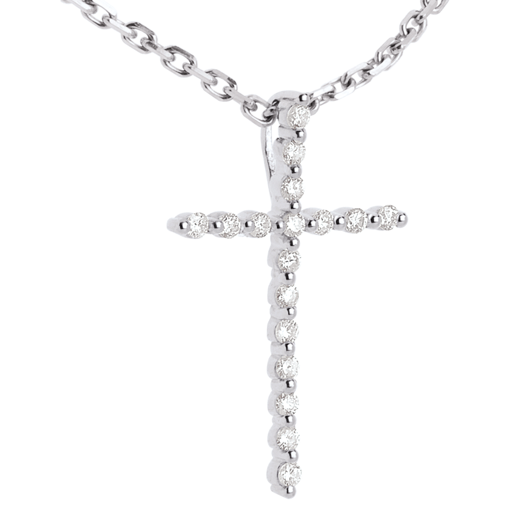 Zawieszka w kształcie krzyża z białego złota 18-karatowego - 17 diamentów