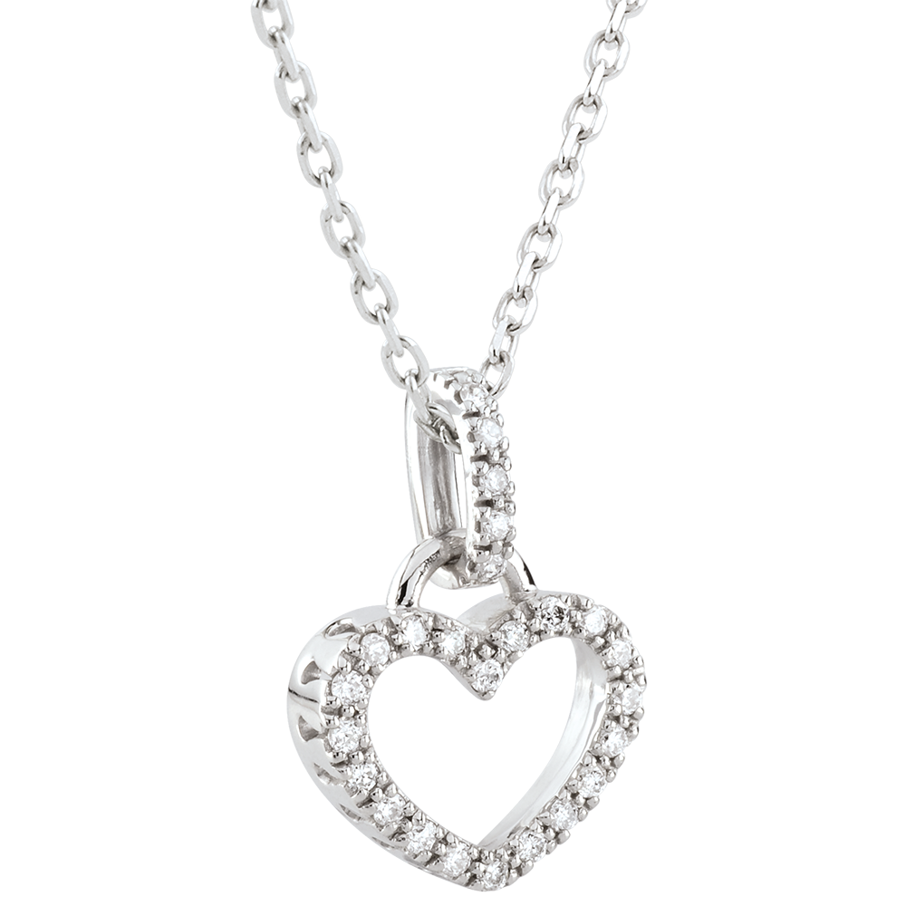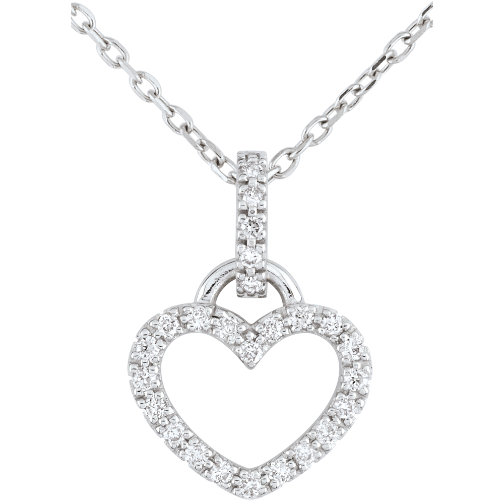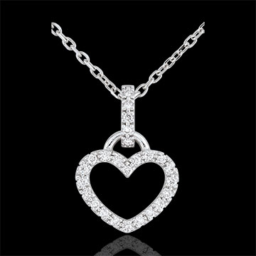 Bardzo kunsztowne serce z białego złota z kołem wysadzanym diamentami w zawieszce będącej wyrazem największego wyrafinowania.