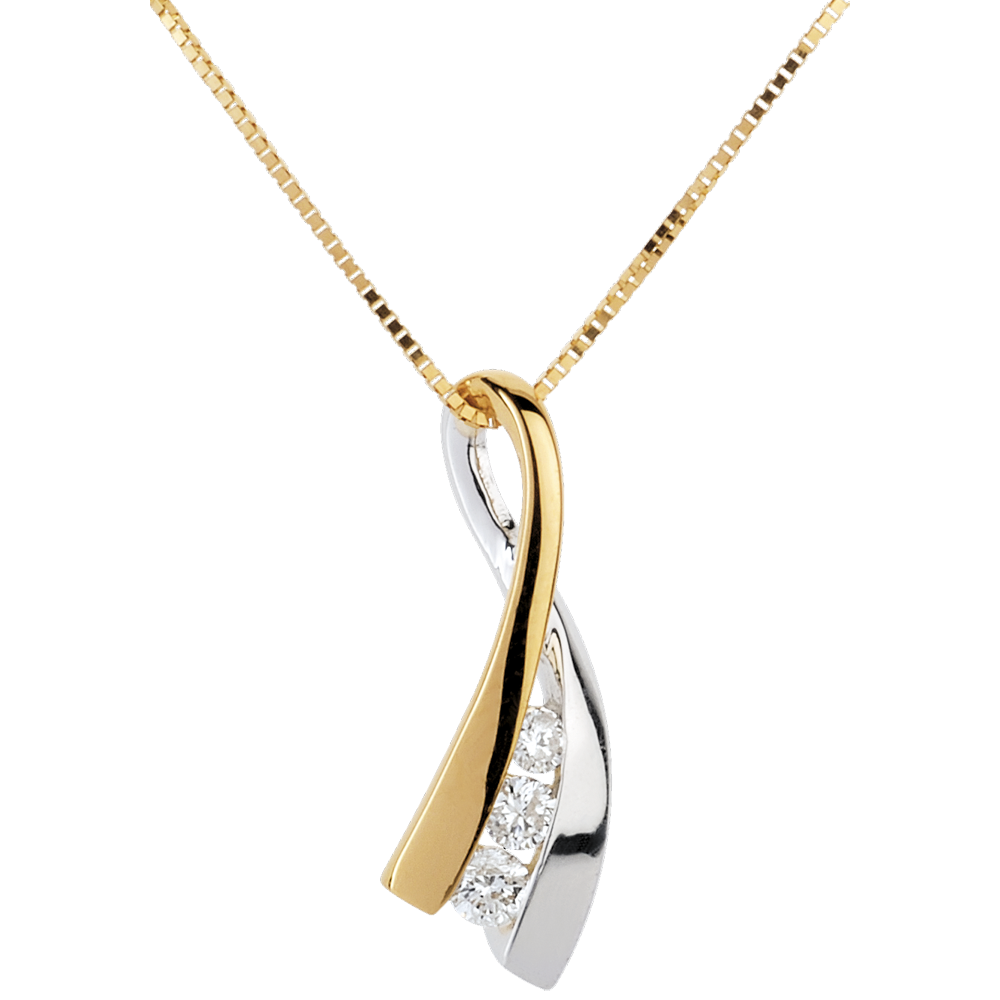 Wstążka z żółtego i białego złota na łańcuszku, przypominająca węzeł z trzema diamentami.