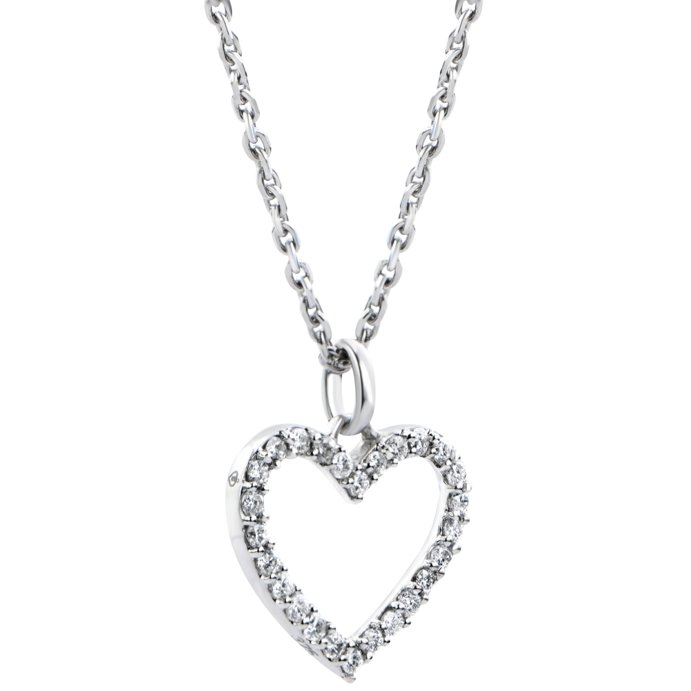 Zawieszka w kształcie serca z białego złota wysadzanego diamentami. Prosty, ponadczasowy symbol o jasnej i jednoznacznej wymowie.