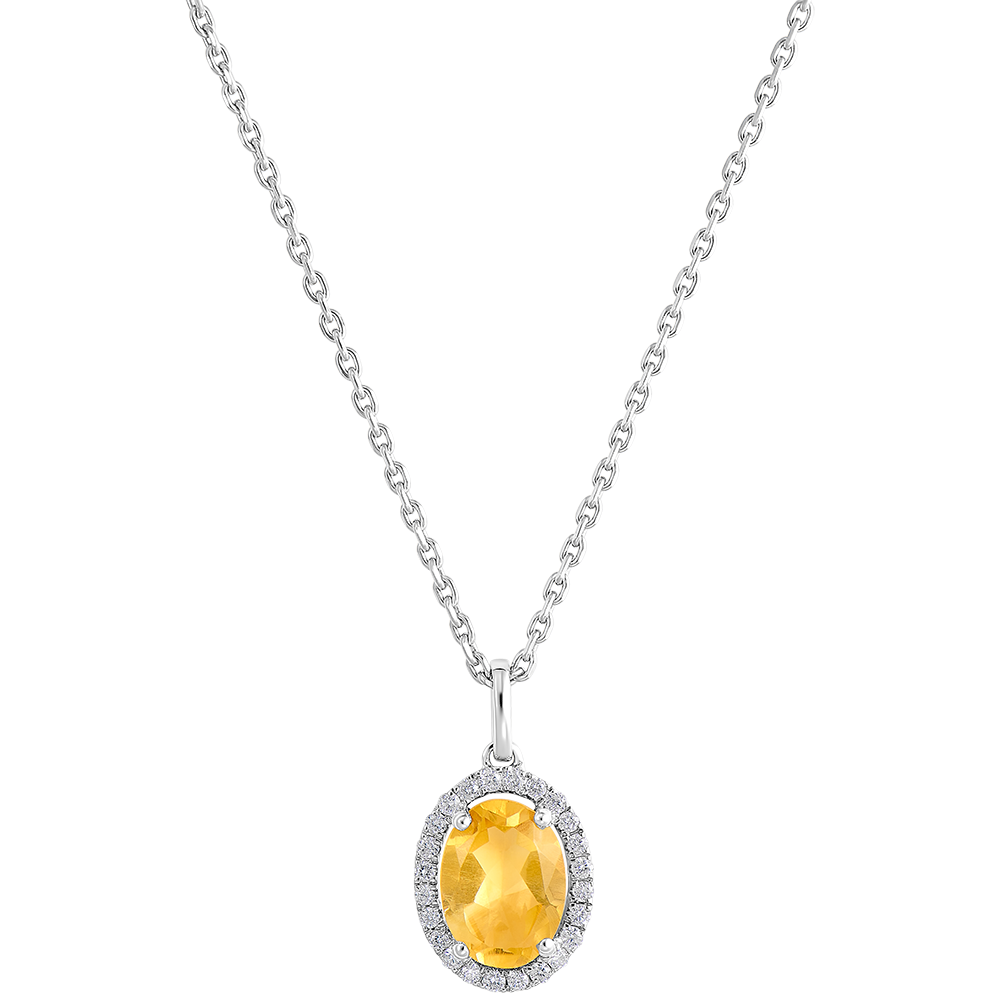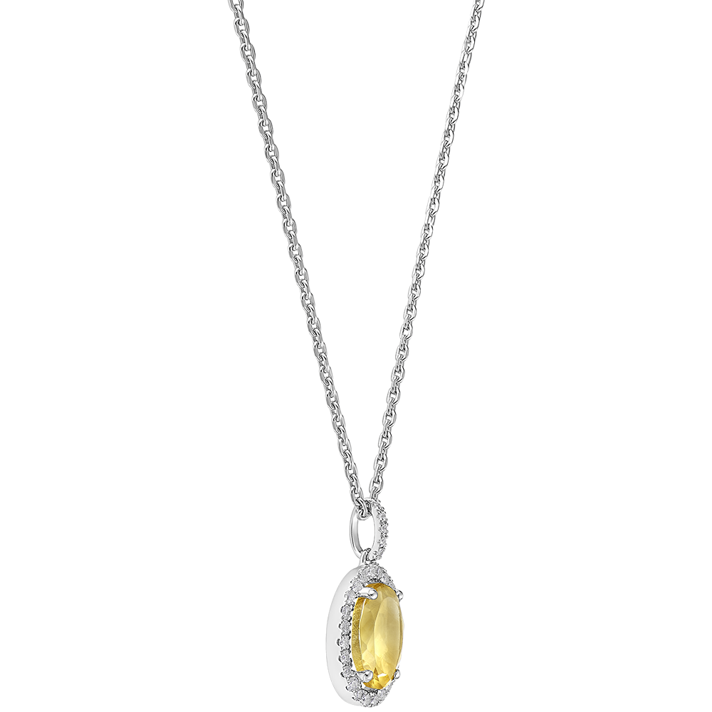 Spoczywający pośrodku cytryn został otoczony kręgiem z diamentów.