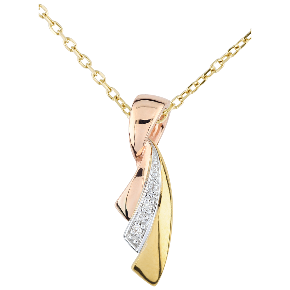 Delikatna wstążka rozdziela się na trzy części ze złota i diamentów. Kunsztowna i kobieca ozdoba szyi.