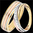 Mocna i wyrafinowana obrączka z trzech rodzajów złota wykonana finezyjnie z ułożonych na sobie kawałków złota.